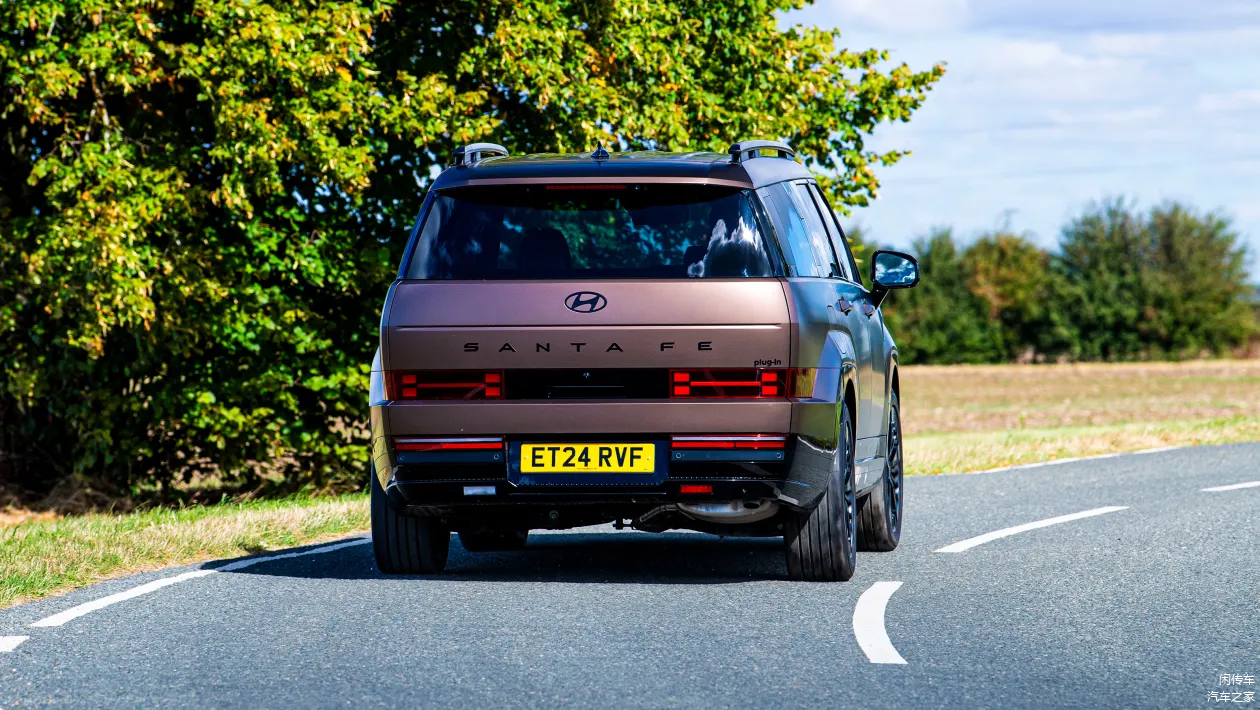 在车身侧面新车则保持了现代起亚新一代SUV标志性的方盒子造型,但A柱倾斜角度很大,悬浮车顶设计也显示了偏向家用的一面,车顶厚实的行李架,CD柱处的特殊扩展槽,相对较高的离地间隙等元素都不会缺席,增强了实用性和通过性。在车尾部分,车顶有着小尺寸扰流板,后风挡非常垂直,下方的尾箱也很垂直,上半部分只有现代车标和胜达字母标的镶嵌。所有的灯组都集中到了下半部分,H形的光源和后保险杠部分横向的灯组相搭配,将个性进行到底。