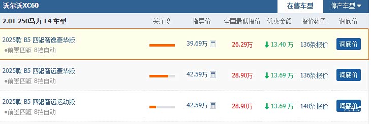 同为二线豪华品牌,以超高安全性著称的沃尔沃在面对BBA和自主高端品牌的强大竞争下,市场表现一直非常稳定,而其中要数XC60性价比最高,目前终端优惠普遍都很大,也促成其成为沃尔沃在国内最畅销车型之一。