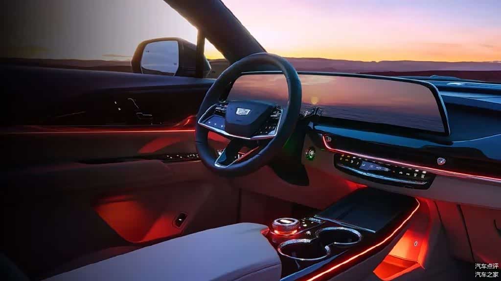 内饰方面,全新XT5采用环抱式豪华游艇内饰,仪表台线条向两侧自然延伸,使得座舱的视野更为开阔,在用料上全新XT5也是不惜成本采用真材实料,真皮、铝制面板、实木装饰构成了极具层次感的座舱空间,座椅采用Fine Nappa半苯胺手工真皮,在设计上还融入了蒙德里安元素,手感细腻,视觉奢华。同时,126色氛围灯带环绕于座舱之中,长度达到4454mm,还能与中控屏、AKG音响、空调、车窗等形成联动,打造出专属于用户的座舱氛围。而副仪表台上的MFC门斯之盾晶钻旋钮,则为整车的精致感增分不少。