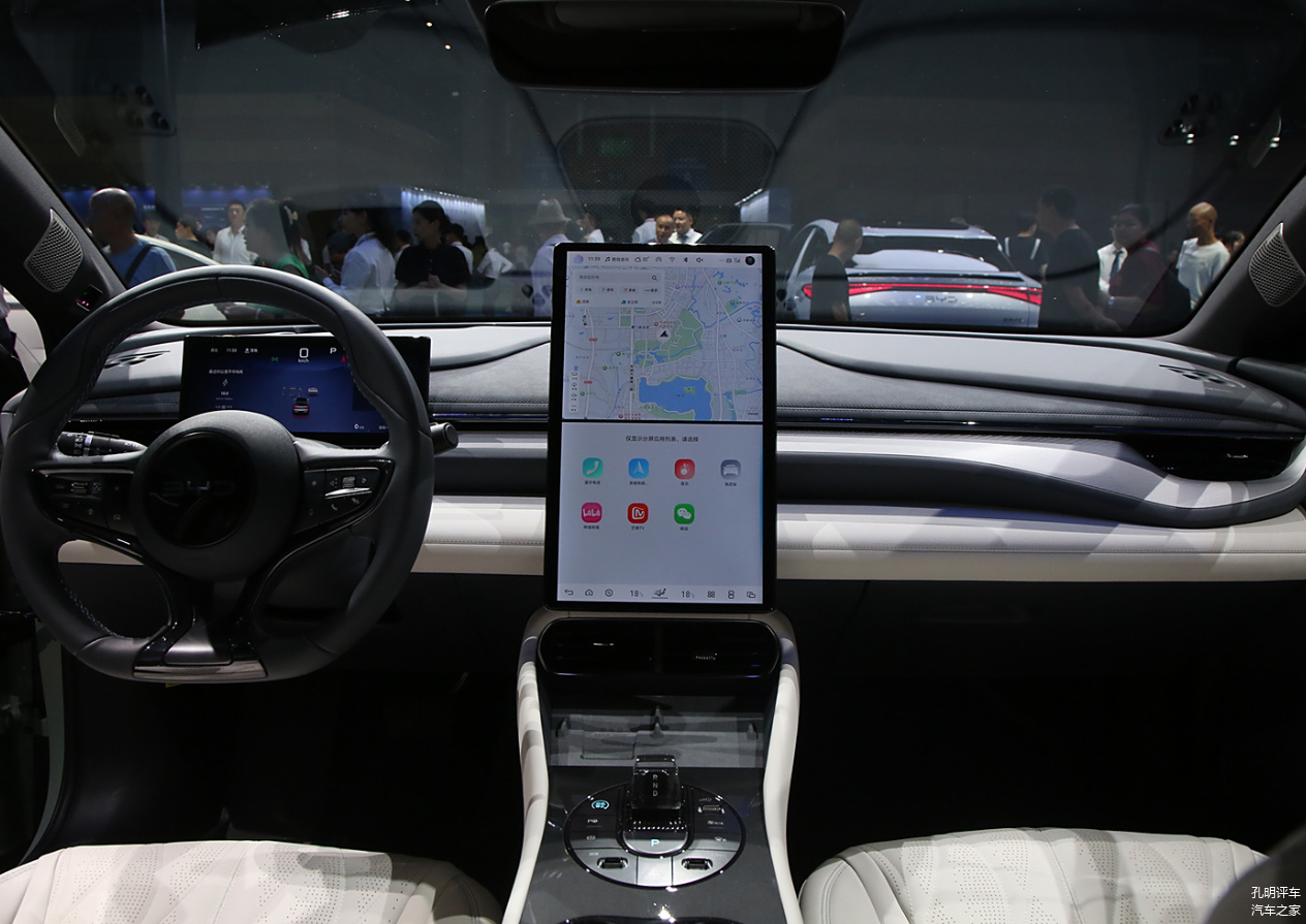 车内整个中控台面的线条比较复杂,而且继承了比亚迪海洋网车型大量的通用件,比如方向盘造型以及水晶质感电子档杆都很熟悉。而台面上布局了自适应旋转大尺寸竖屏,搭配有较大尺寸的数字液晶仪表盘以及抬头显示。