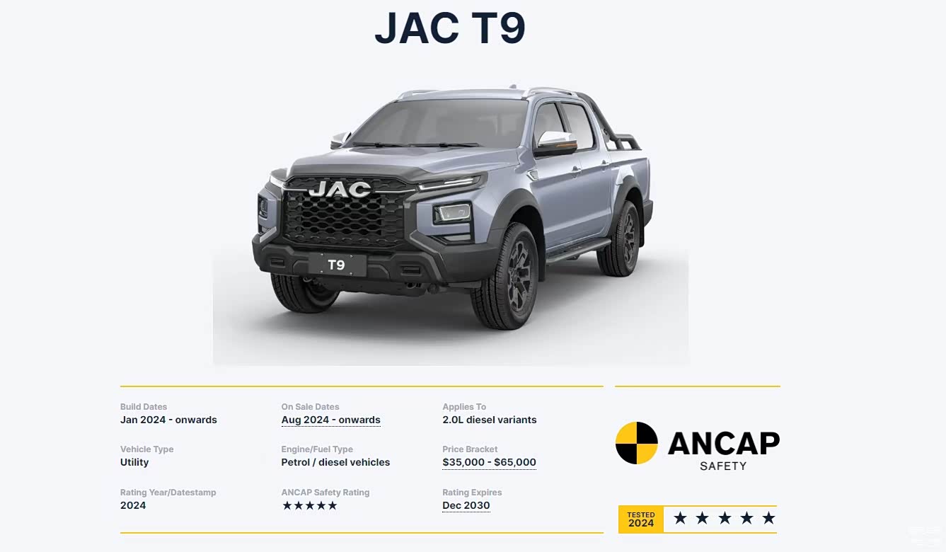 参加此次测试的车型为江淮T9,即国内市场的江淮全新悍途。在成人乘员保护、儿童乘员保护、弱势道路使用者保护以及安全辅助等方面,江淮悍途的得分分别是:85%、87%、87%、89%,超过五星安全评级的最低要求:80%、80%、70%、70%,因此一举斩获澳洲ANCAP五星安全评级。考虑到澳洲ANCAP和欧洲ENCAP相当,江淮全新悍途已具备欧洲ENCAP五星安全评级的实力。