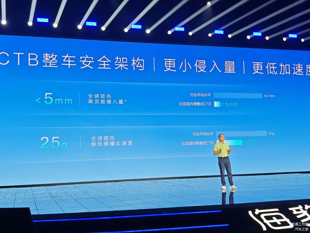 采用主后驱动力架构,使前舱安全缓冲空间增加100mm,正碰安全性能提高了60%。4.9s 0-100km/h实测加速时间,200km/h 实测最高车速,大家可以去漂移,漂着玩~此外,车身架构方面,采用行业首创TRB一体式热成形前围板、1500兆帕级超高强度闭口辊压横梁,与高强度刀片电池深度集成,构成内骨骼式CTB安全架构。CTB整车安全架构,更小侵入量!全球领先,极低碰撞加速度。