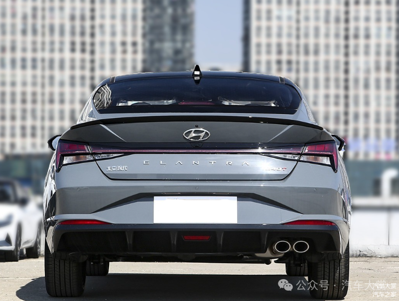 伊兰特的尾部也延续了运动风的设计,在车尾我们可以看到小尾翼的设计,这个设计对于年轻人来说是无法抗拒的。