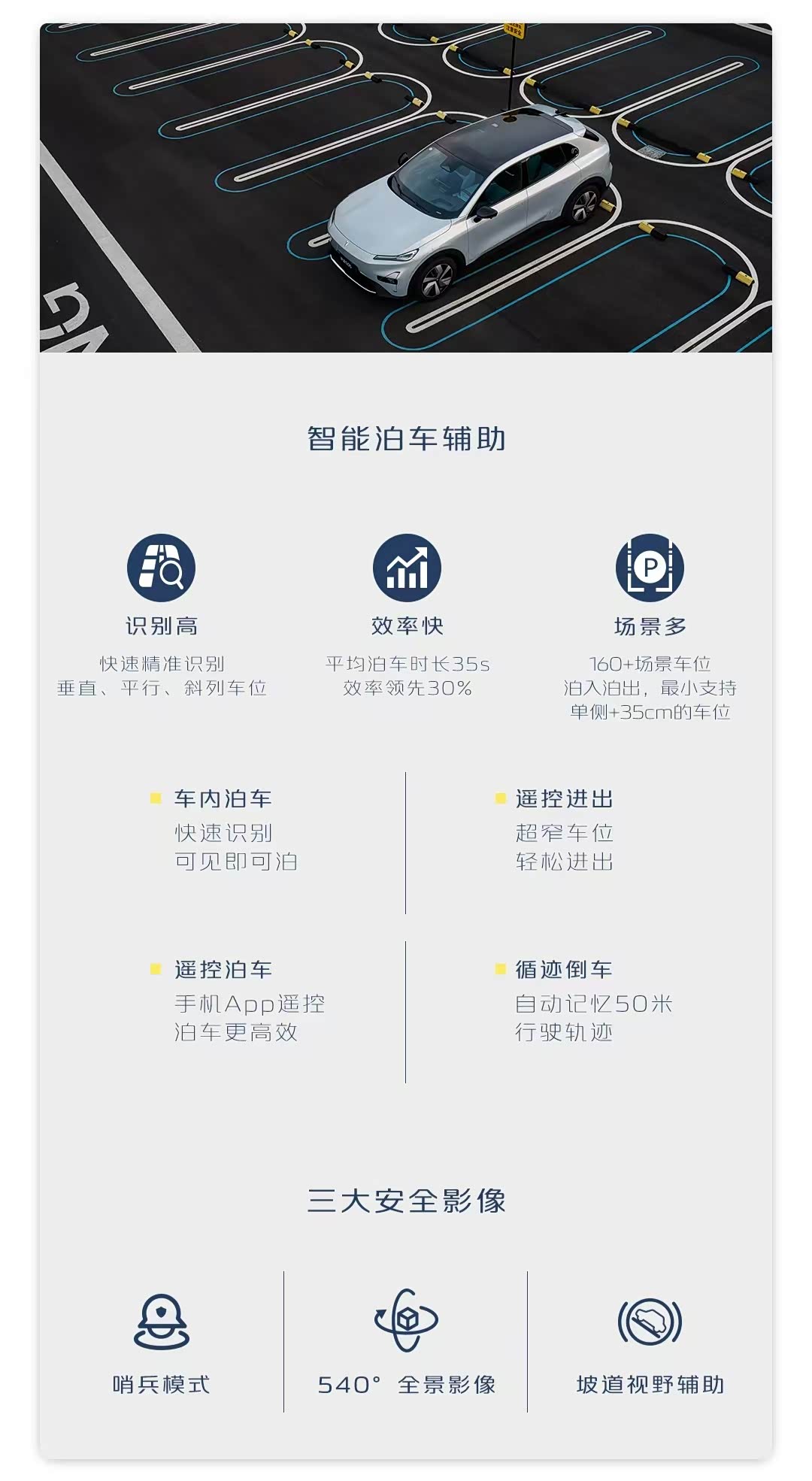 当然,深蓝S05的智能驾驶辅助配置也很到位。它配备了5颗车外摄像头(含1颗800万像素摄像头)、5颗毫米波雷达和12颗超声波雷达,支持L2+级驾驶辅助功能,包括盲区监测、并线辅助。而且还有智能泊车辅助,不仅支持常规泊车功能,还有遥控泊车、循迹倒车等高阶功能。