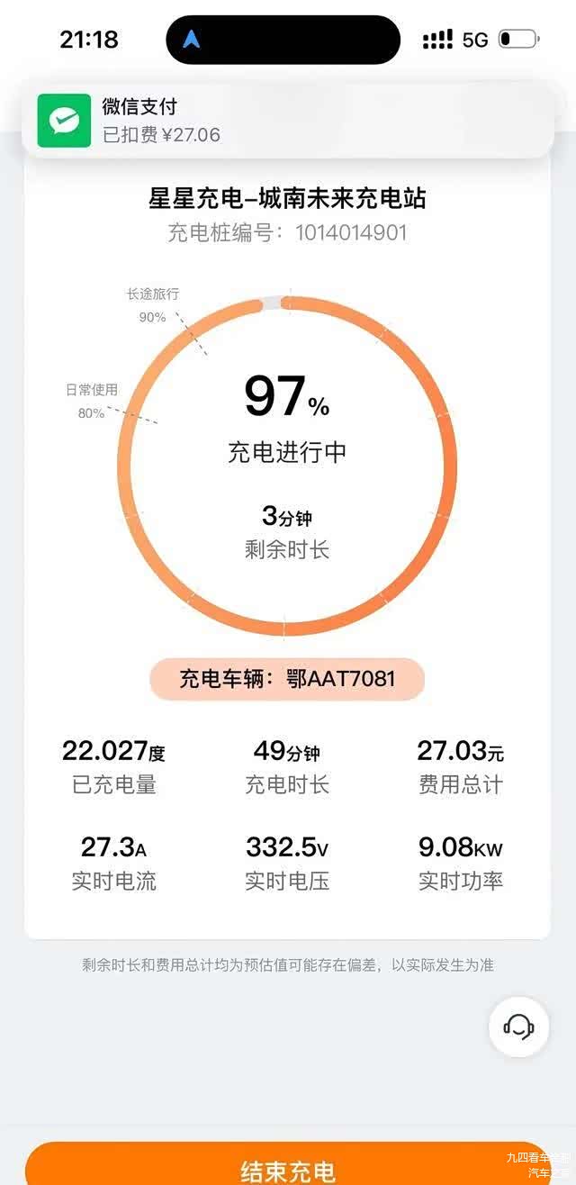 从18%的电量充至99%,总共耗时67分钟。特别是在快充阶段,从18%充至80%仅需39分钟,而80%至99%的充电过程则用了28分钟。在快充期间,其充电功率能稳定在大约60kW,显示出良好的充电效率。建议在外使用快充时,充至80%即可获得较佳的充电体验。