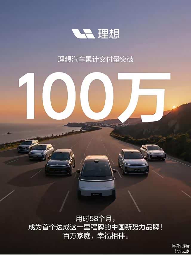 理想汽车第 100 万辆整车下线并完成交付,历时 58 个月,成为首个达成这一里程碑的中国新势力品牌。理想 L6 汽车明年将冲刺 3 万台 / 月产能。