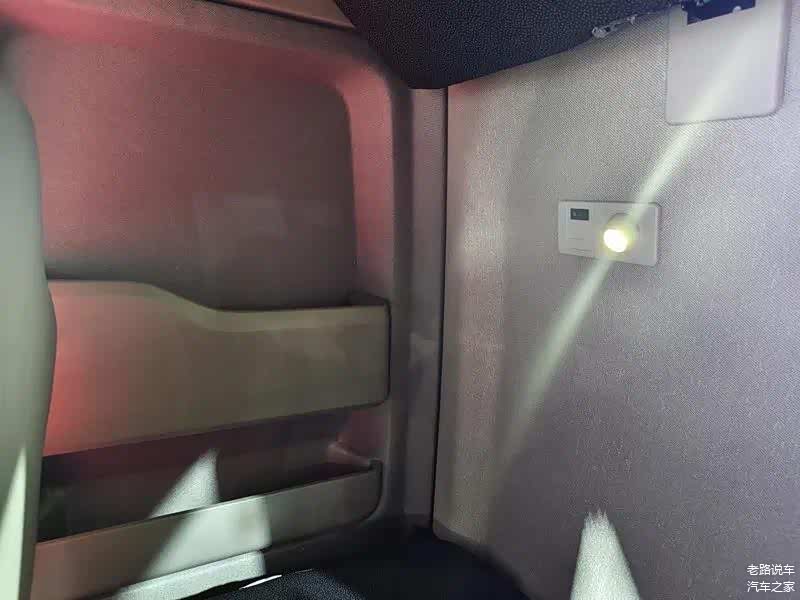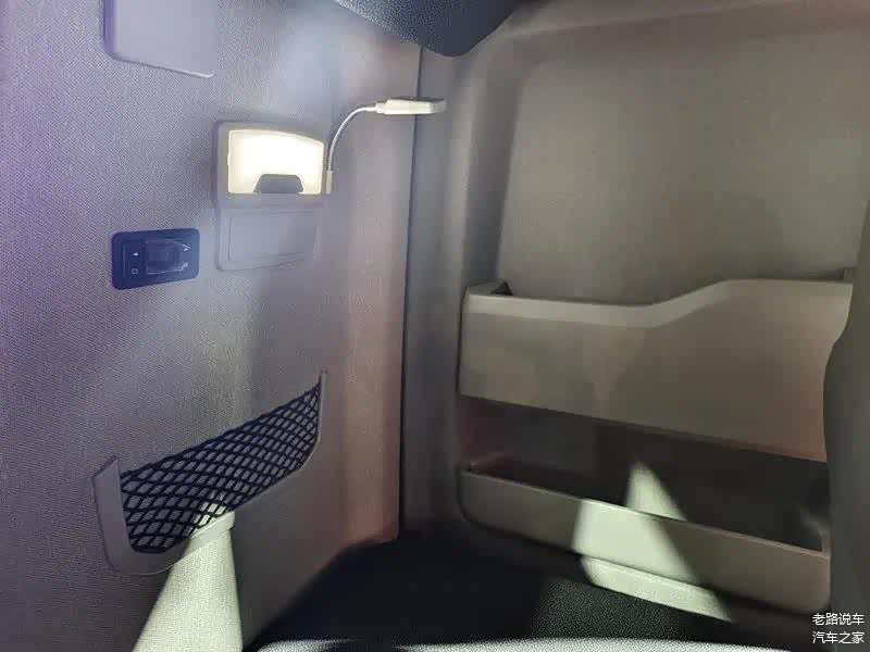 卧铺主驾一侧设有开关、照明灯、网兜和储物格