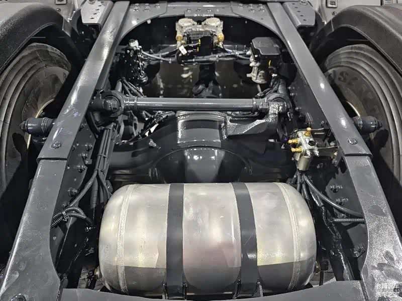 后桥采用I型推力杆,铝合金储气罐布置在车架中。