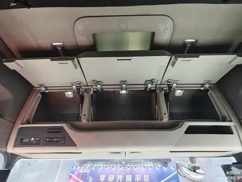 拍摄车副驾也配备了多功能气囊减震座椅,纯平地板驾驶室内高2.1m,拥有1550L储物空间。