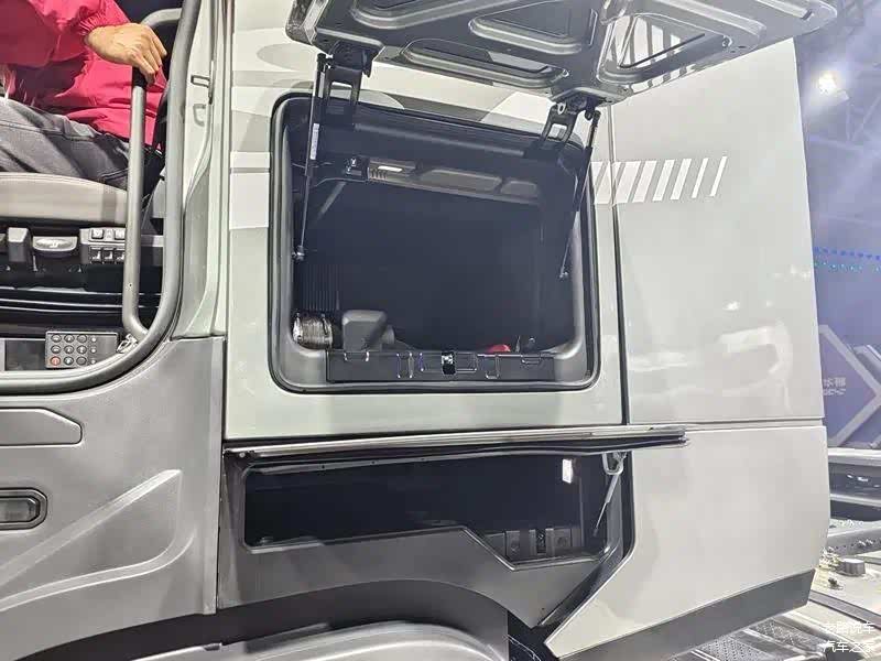 冰箱一旁带有逆变电源,驾驶员可以随时随地吃上热乎饭。