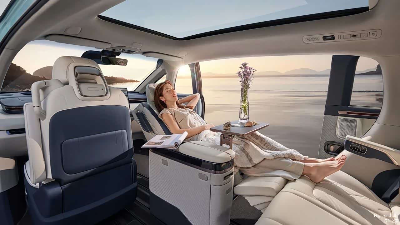 如二排膝部空间,极氪MIX较最新款埃尔法多出20%。通过后排座椅前移,在不影响后排乘坐的前提下,可得到568L后备厢空间,轻松放置全家人的露营装备。加之灵活的座椅布置和巨大车门,极氪MIX前后排之间甚至可直接放进2辆自行车。