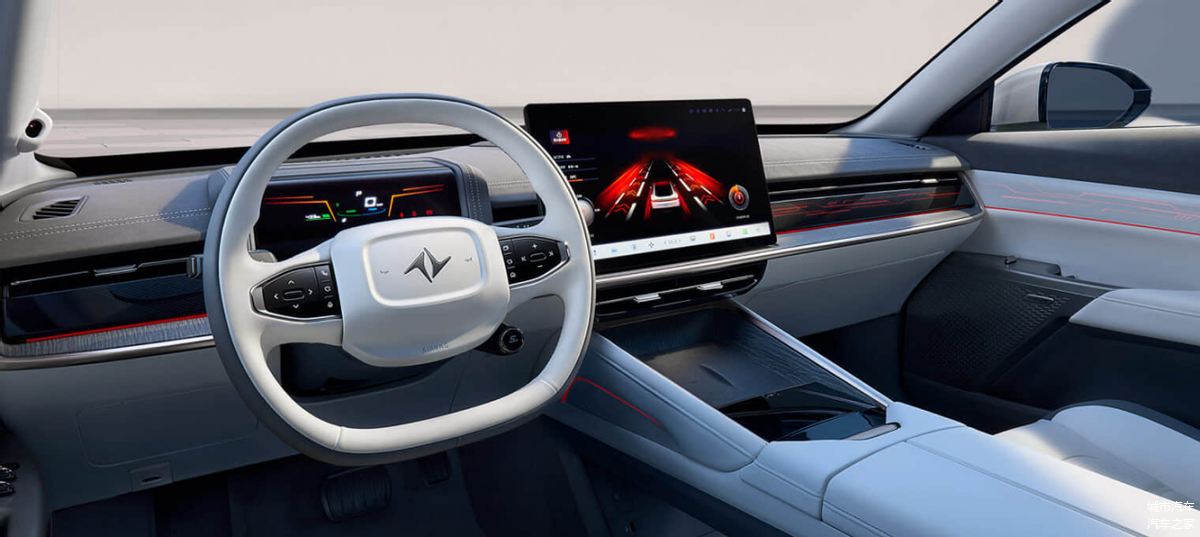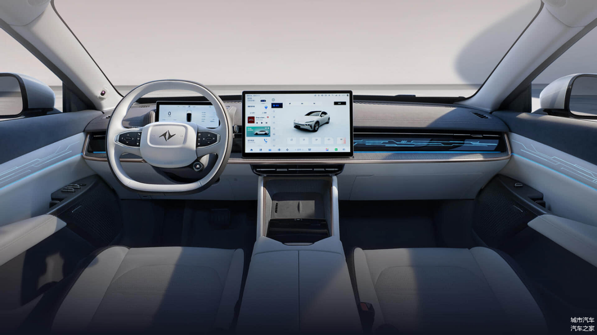 在内饰设计上,eπ007采用了电动汽车领域中流行的极简主义风格,车内的物理按钮数量被尽可能精简。此外,eπ007车内配备了8.8英寸的数字仪表盘和15.6英寸的中控触摸屏,SOA智能座舱系统配备了8155车机芯片。