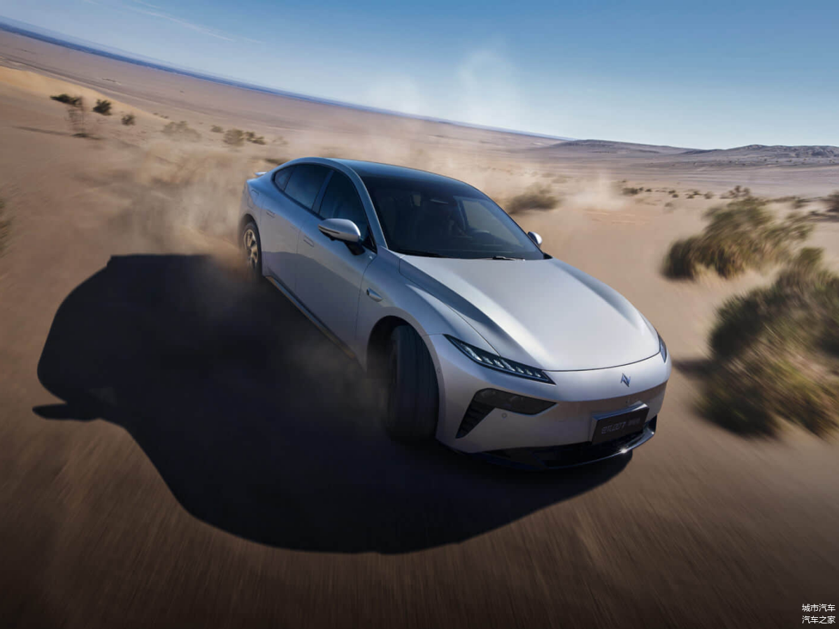 从外观来看,eπ007前脸的封闭式格栅线条锐利,与细长的分体式前大灯相得益彰,展现出强烈的视觉冲击力。侧面的线条流畅,带来了一种轿跑的风范。隐藏式门把手、无框车门和低风阻轮圈的设计,使eπ007的风阻系数降至0.209Cd。尺寸方面,eπ007长宽高分别为4880/1895/1460mm,轴距为2915mm。