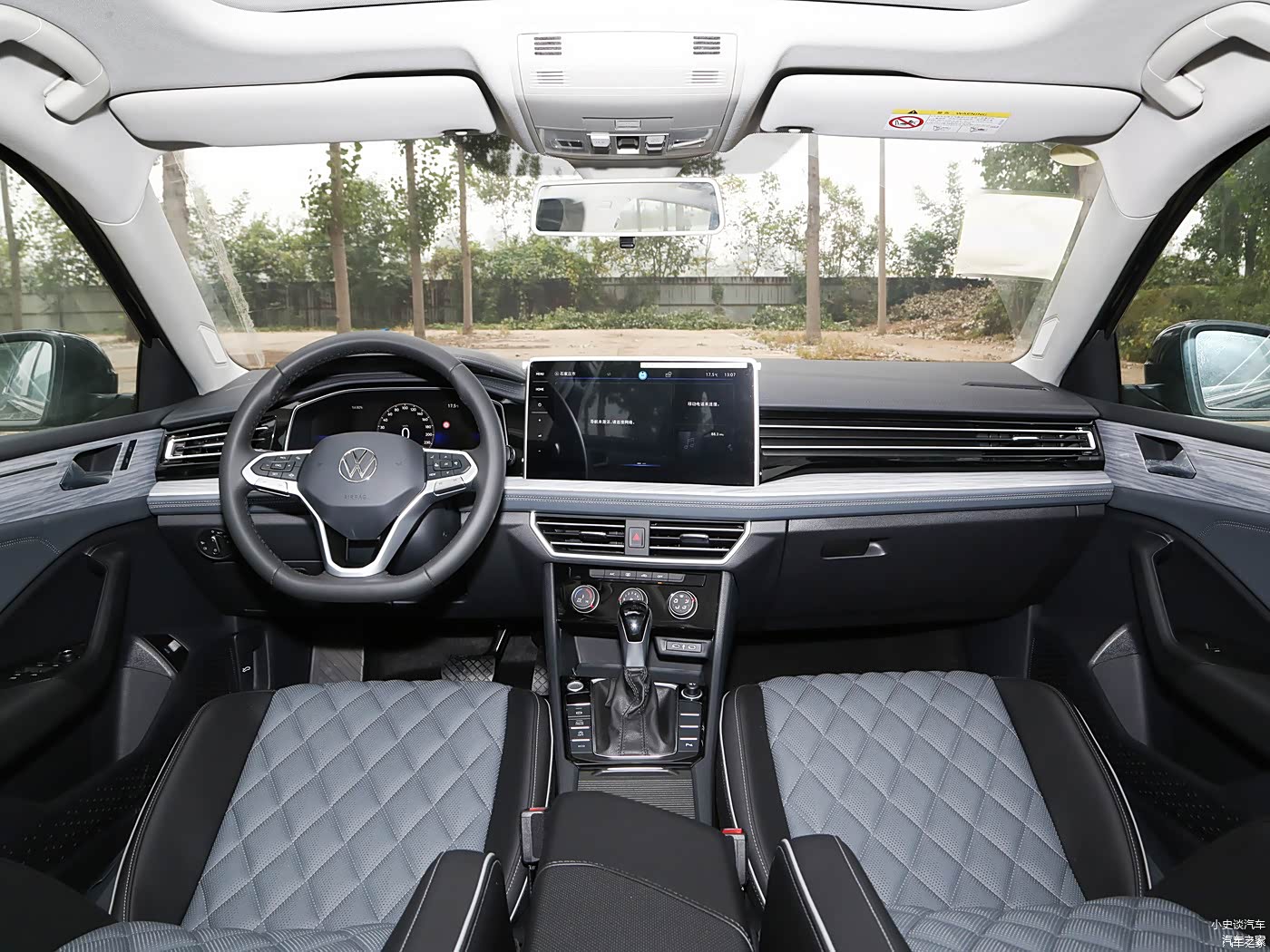 进入车内,新车内饰双拼色的设计看起来很年轻,并且内嵌式的液晶仪表以及悬浮式的中控大屏设计,增加着出色的科技感,平直的中控台则是有着贯穿式的空调出风口以及木纹饰板镶嵌,增加着车内的视觉宽度以及层次感。大尺寸的菱形格座椅也是提升着不错的档次感。