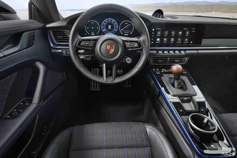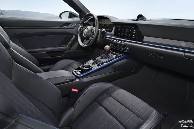 除此之外,新款保时捷911 Carrera T配备了黑色18向自适应调节式运动型座椅升级版,座椅中心采用了Sport-Tex面料,搭配格子呢织物图案,头枕绣有“911”专属标识。当然,车主也可以根据自身喜好,免费选装真皮材质。