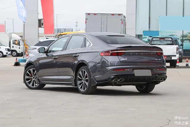 转到车尾,尾灯为分体式设计,造型立体,并与镀铬饰条相连,结合英文标识,点亮后很是吸睛。后包围则为熏黑的饰板包裹,搭配双边共四出的排气设计,整体看动感十足。
