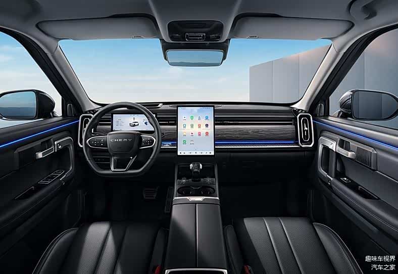 在内饰的设计布局方面,瑞虎7高能版车型基本上延续了探索06的设计风格,车内整体的风格以大气为主,并且熏黑式的涂装还有着蓝色氛围灯的点缀,此外,在配置方面,新车配备有悬浮式液晶仪表盘、纵置中控大屏、平底式三辐方向盘等配置,并搭载全新的智能操控系统,配置也是可圈可点。