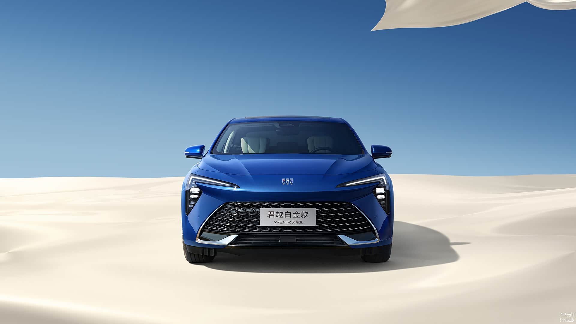外观方面,2025款别克君越白金款延续品牌最新的PURE Design纯粹设计理念,整体造型与2024款车型没有本质差异,主要是对前格栅内部装饰进行了更新。在此基础上,白金版艾维亚车型在车身细节处镶嵌有“Avenir”字标,并且除了“朗黑”、“玉白”、“坦银”车身颜色外,还提供专属“帝王蓝”车漆。车身尺寸方面,2025款别克君越白金款的长宽高分别为4996/1866/1475(1472)毫米,轴距为2905毫米。