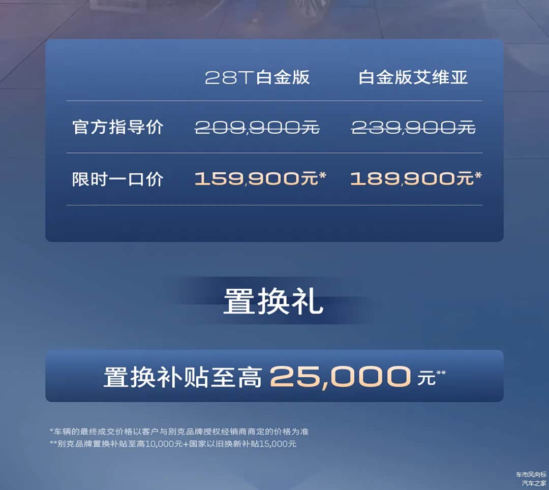 近日,别克针对君越做了改款,新车还是就2款车型,官方指导售价区间为20.99万和23.99万元,即便是销量平平,该有的架子依然不能倒,只不过官方也知道这样的价格显然是卖不动的,所以上市同时还给了限时价15.99万和18.99万元,相当于在指导价的基础上官降了5万块,另外新车上市期间还可享受最高2.5万元的置换补贴,如果是有符合政策的旧车置换的话,那么该车的价格将来到13万多,还是很有竞争力的。