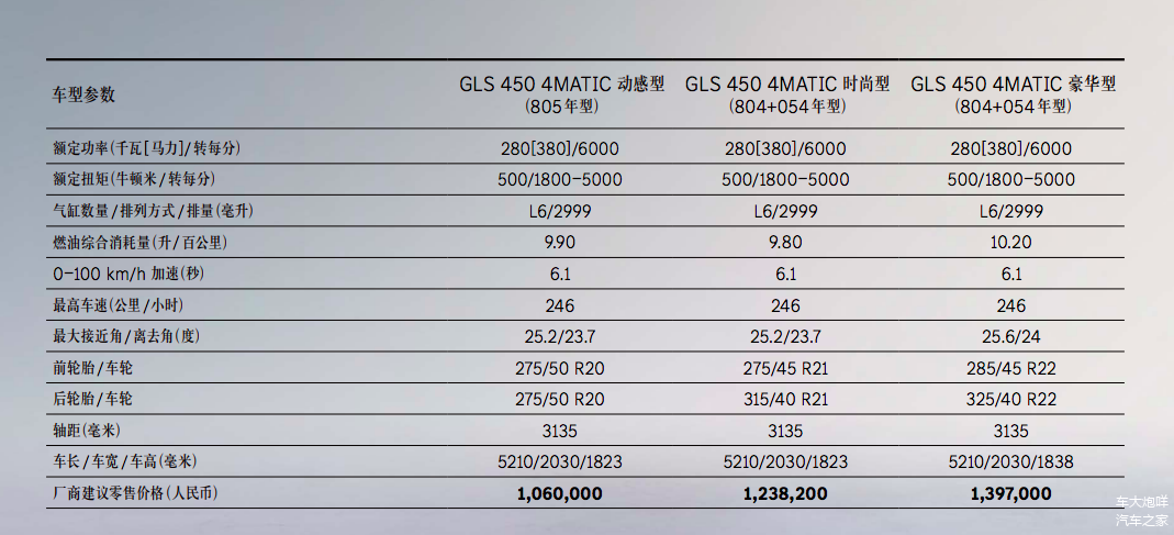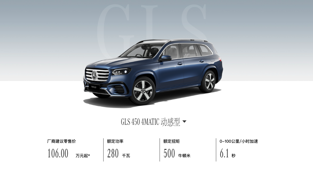 日前,笔者从梅赛德斯-奔驰官方获悉,2024款奔驰GLS 450 4MATIC动感型现已正式上市,指导价106万元,相比奔驰GLS 400 4MATIC(指导价:109.38万元)低了3.38万元。同时,梅赛德斯-奔驰官网已下线奔驰GLS 400 4MATIC相关产品信息,这也意味着接下来在产在售的奔驰GLS均为3.0T六缸动力版本。