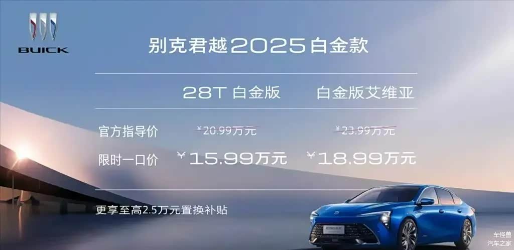 在10月30日这一天,2025款别克君越白金版本正式对外发布。发布了两款不同的汽车型号,官方推荐的售价区间是20.99-23.99万元。目前,这款汽车的单次销售价格范围是15.99-18.99万元。这辆车被视为美国中型汽车的经典例子,它的性价比确实非常出众。这个新发布的车型是作为年度更新而设计的,其硬件配置已经经历了明显的改进。