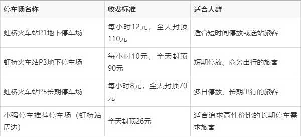 以下是虹桥火车站各停车场的具体收费标准,以及通过小强停车平台预约的周边优惠停车选项: