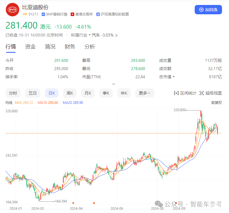 今年1月份到截稿前,比亚迪的股价整体呈上涨趋势,在港股的股价上涨了31.9%。