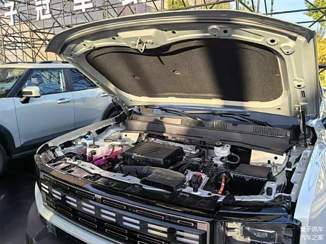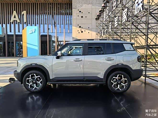 这款新车具有4706x1967x1845mm的车身尺寸和2810mm的轴距,被定义为紧凑型的插混SUV。车辆的侧面设计充满了越野元素,特别是前后轮眉和车门装饰板都采用了黑色的涂装,这与前后杠的设计是紧密相连的。除了这些,这款新车还特别增设了侧踏板,以便于驾驶和乘坐者更便捷地进出车辆。