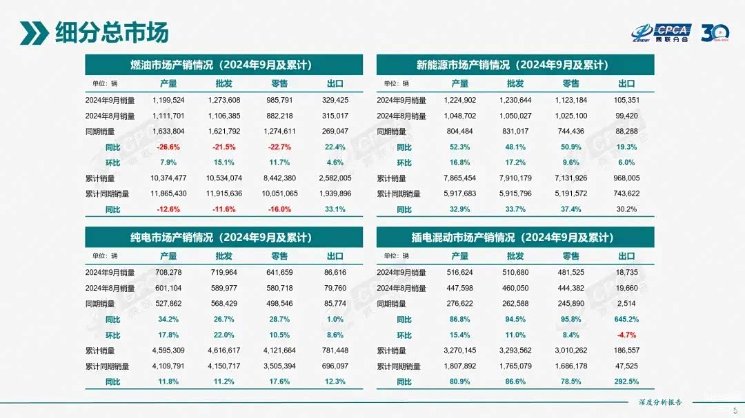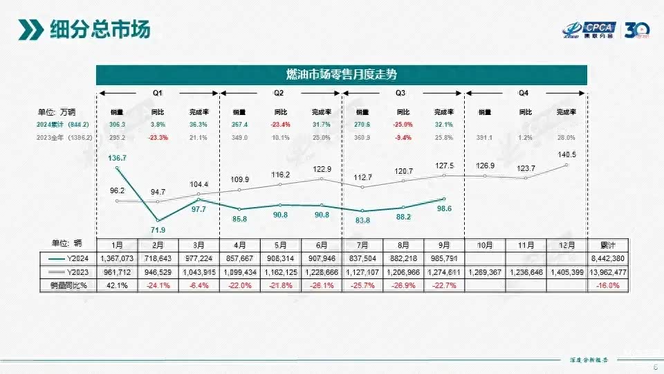 用数据说话,根据乘联会统计,今年以来,燃油市场月度零售销量除了1月同比增长,2-9月都是下滑的。存量时代,新能源车和燃油车必然会此消彼长,这个毋庸置疑。