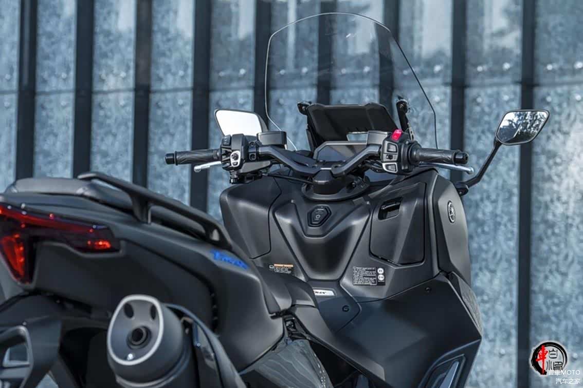 车身结构方面,2025款TMAX依然保持了其独特的50:50的重量分配,这让车辆在行驶过程中更加稳定。车架的尺寸和人体工程学设计也经过了调整,无论是车把还是靠背,都能让驾驶者找到最舒适的驾驶姿势。座椅和把手支持多个级别的加热,让驾驶者在寒冷的天气里也能感受到温暖。可调节的挡风玻璃和新型TPMS胎压监测等实用配置的加入,更是让新车的实用性得到了进一步提升。