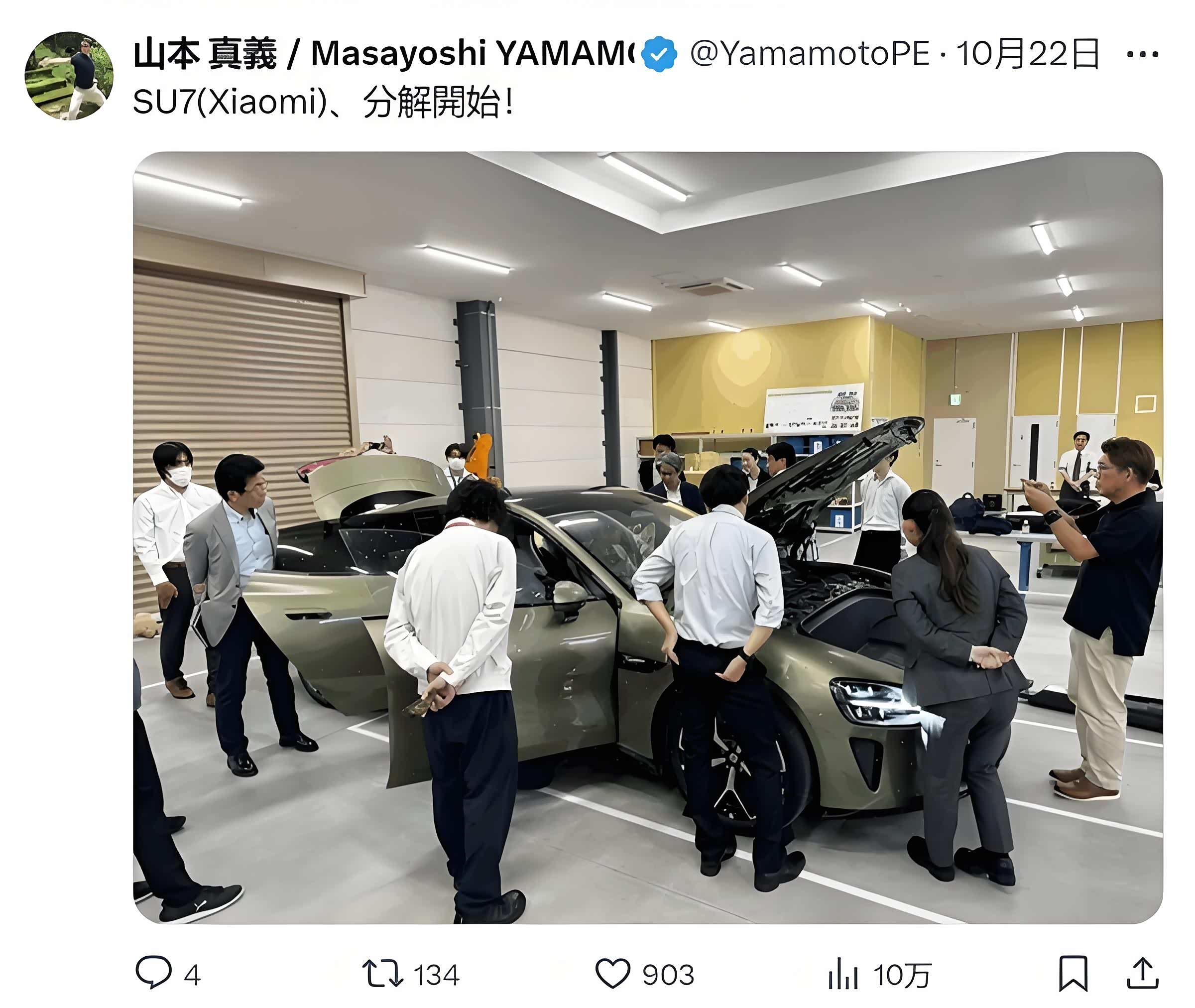 这辆小米SU7是他来中国亲自购买的(7月份),购买后会运输到日本,至于是空运还是海运,这就不得而知了,反正这辆车已经安全抵达日本。山本真义并没有急着拆解,而是亲自驾驶了几个月,对小米SU7的评价还是很高的。