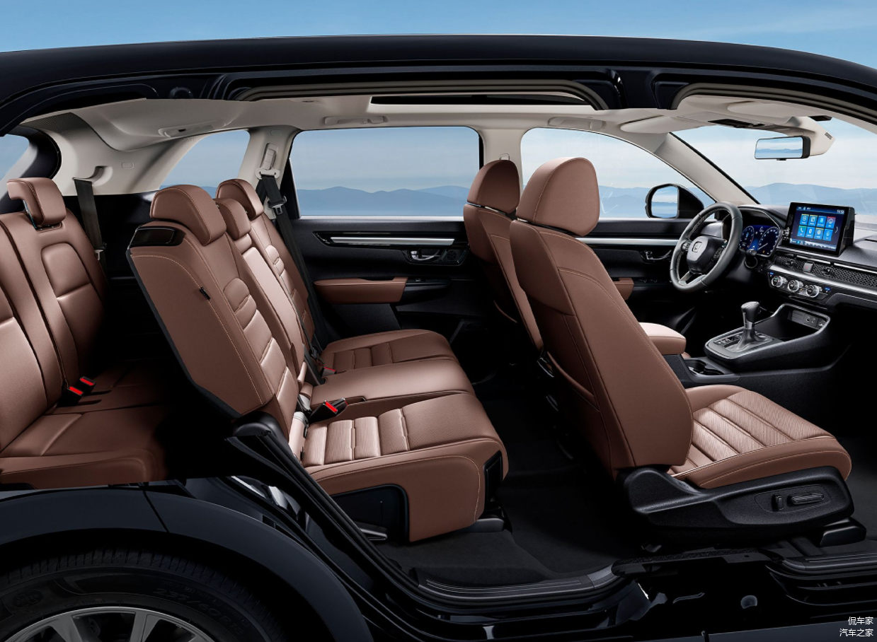 本田CR-V的内饰设计注重实用性和舒适性,中控台布局合理,这样有助于便捷操作,还配备了悬浮式中控屏和多功能三辐式方向盘,提升了整车的科技感。座椅采用真皮材质包裹,确保乘坐体验更舒适。