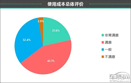 对于2024款零跑C10使用成本的总体评价中,参与调查的车主给出了相对客观的评价,选择“非常满意”和“满意”的车主占比之和达到64.7%,认为“一般”的车主占比为32.4%,认为“不满意”的车主占比仅为2.9%。