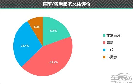 不过,在售前/售后服务总体评价中,接受调查的车主还是给出了客观的评价,其中认为“非常满意”的车主占比为19.6%;认为“满意”的车主占比为43.2%;认为“一般”的车主占比为28.4%;明确表示“不满意”的车主占比为8.8%。