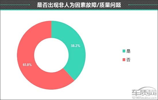 根据调查结果显示,在接收到的102份有效问卷中,有39份问卷显示车辆已经出现过非人为故障或质量问题,占比为38.2%。