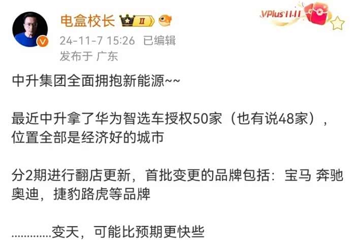 近年来,电动化浪潮席卷全球汽车产业,新能源汽车在国内的渗透率早已超过50%。多家汽车经销商纷纷抛弃传统燃油品牌,不断布局新能源品牌。就连向来对新能源较为谨慎的行业头部企业——中升集团也坐不住了。近日有消息称,中升拿下50家华为鸿蒙智行授权,分2期进行翻店更新,替换和变更旗下的宝马、奔驰、奥迪等4S门店。另有网友爆料,东莞、烟台等地的中升宝马门店,确实正在翻牌成华为智选车的问界品牌。