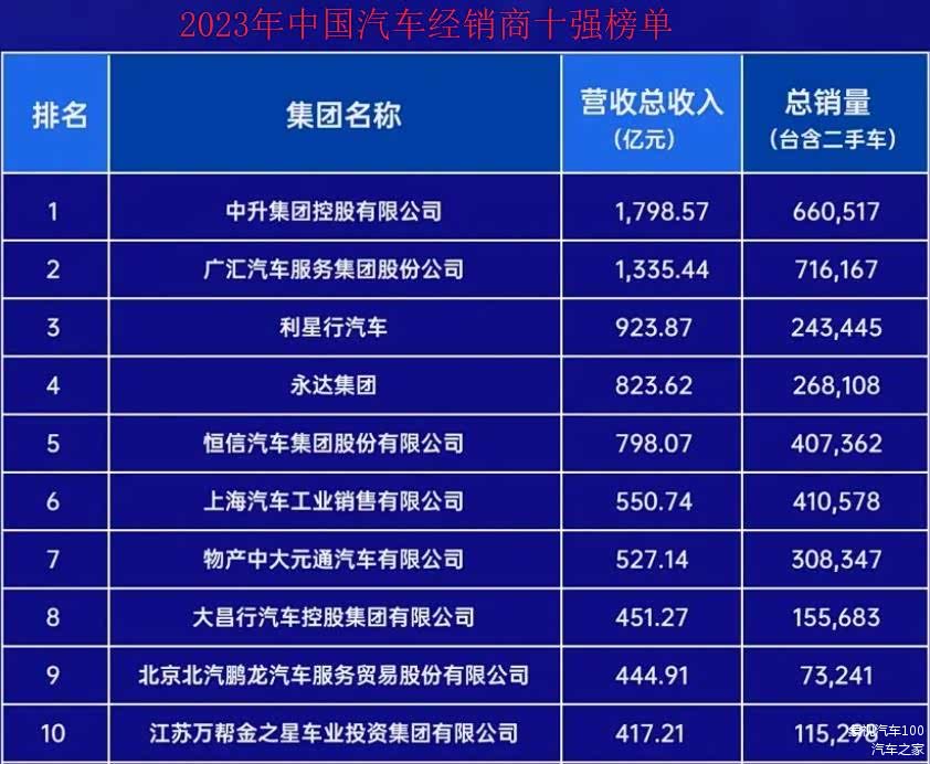 受此消息影响,中升股价两个交易日涨超50%。而2022年和2023年,中升股价暴跌超80%。一涨一碟,说明在外界看来,中升抛弃BBA转向华为,这步棋走对了。公开资料显示,2023年中升营收高达1798.57亿元,远超广汇、利星行等,堪称中国最大汽车经销商。其旗下拥有约420家门店,其中约270家为BBA等豪华品牌,剩下约150家为中高端品牌。这样一家企业,开始将BBA门店换成华为问界,意味着豪车市场正在加速变天。