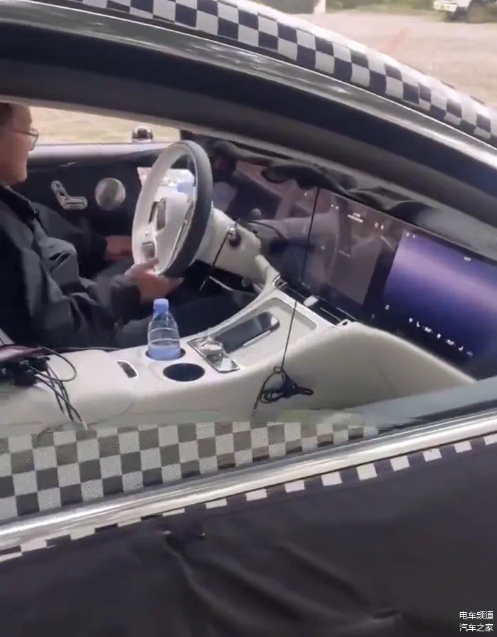 内饰上,则是和之前网上某博主曝光的完全一致,基本就是沿用了问界M9的内饰造型。中控大屏也是三联屏布局,连三块显示屏之间的黑边也和问界M9一样宽,各屏幕分别负责导航、娱乐和车辆控制。此外,空调风出口、圆形方向盘、扬声器、无线充电板、圆形旋钮和两侧的部分实体按键等等,和问界M9不能说大差不差,简直就是一模一样。
