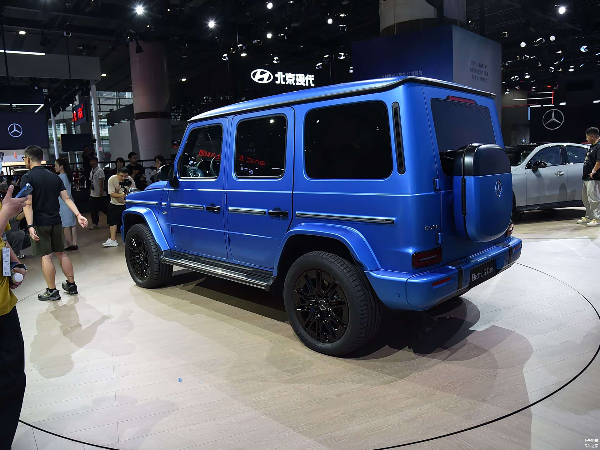 外形方面,新车基本上沿用了燃油版奔驰G级的设计风格,前脸采用的是比较方正的格栅设计,内部使用了横幅式结构进行装饰,搭配奔驰大标带来了出色的辨识度;熏黑的大灯组采用了圆形设计,内部集成有透镜以及环形日行灯,风格显得比较精致。