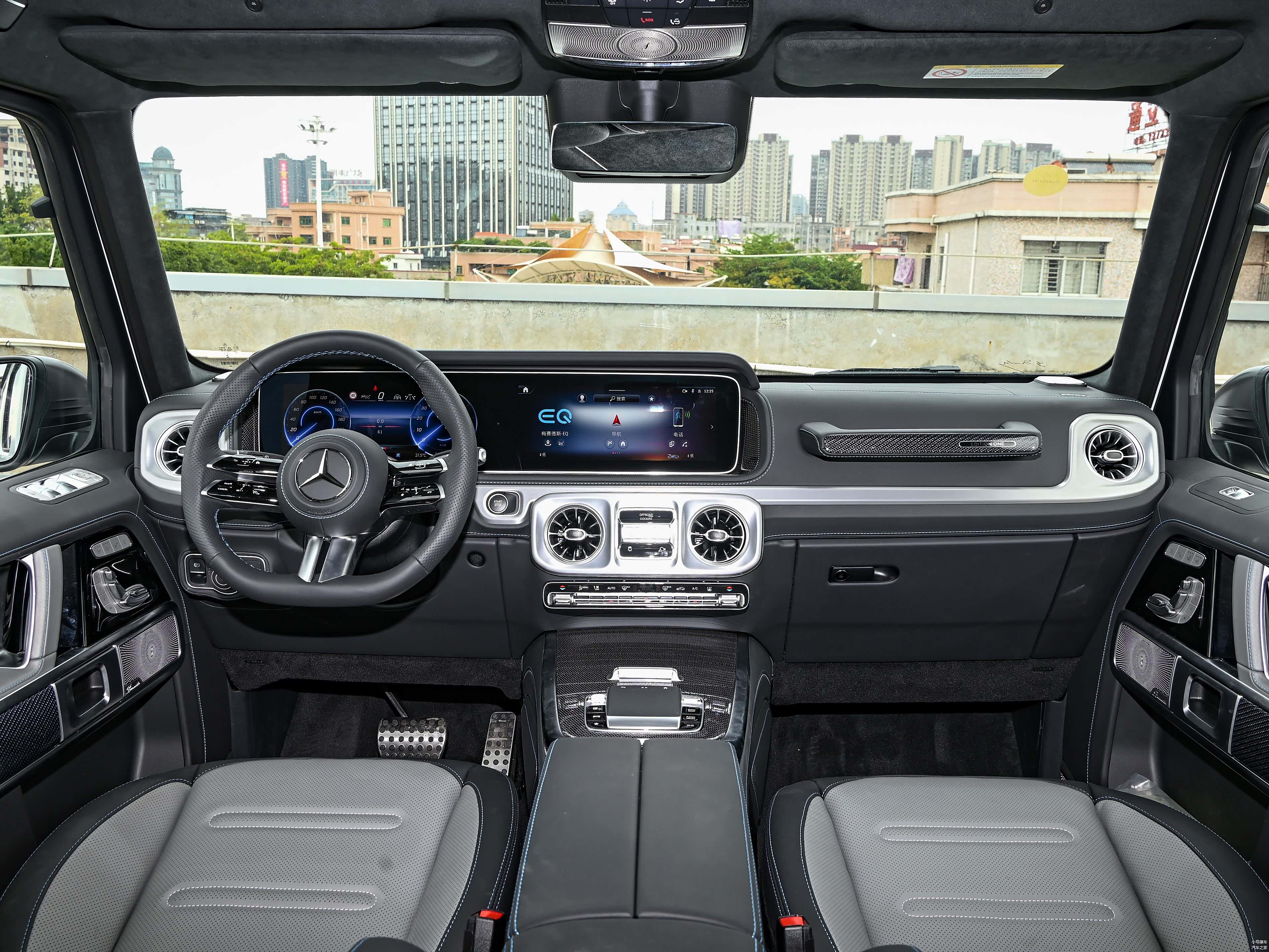 配置方面,纯电动奔驰G级提供有胎压显示、前后驻车雷达、全景影像、透明底盘、L2级别辅助驾驶、自动驻车、上坡辅助、自动泊车、陡坡缓降、悬架软硬调节、可变转向比、电动天窗、电动调节方向盘、无钥匙进入、一键启动、内置行车记录仪、前排座椅电动调节/通风/加热/按摩、第二排座椅加热、柏林之声音响、几何多光束大灯、自动雨刷、自动空调以及后排独立空调。