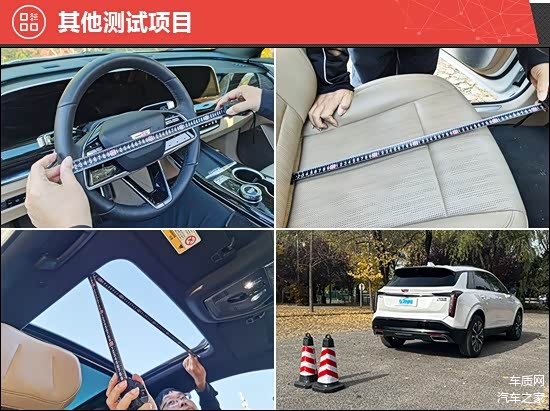 此外,我们还针对驻车雷达、灯光/视野、操控系统、轮胎、天窗、座椅、后备厢进行了测试。经过测试,2025款凯迪拉克XT5的前后排座椅座垫长度均达到同级别中上游水平,乘坐体验舒适。评测车配备米其林PRIMACY SUV旅悦系列轮胎,采用独特触地花纹设计,让车身有效阻挡轮胎噪音,使车内更安静,轮胎规格为235/55 R20。相对而言,前后驻车雷达最近提示距离测试数值未达到同级别车型平均水平,尚存优化空间。