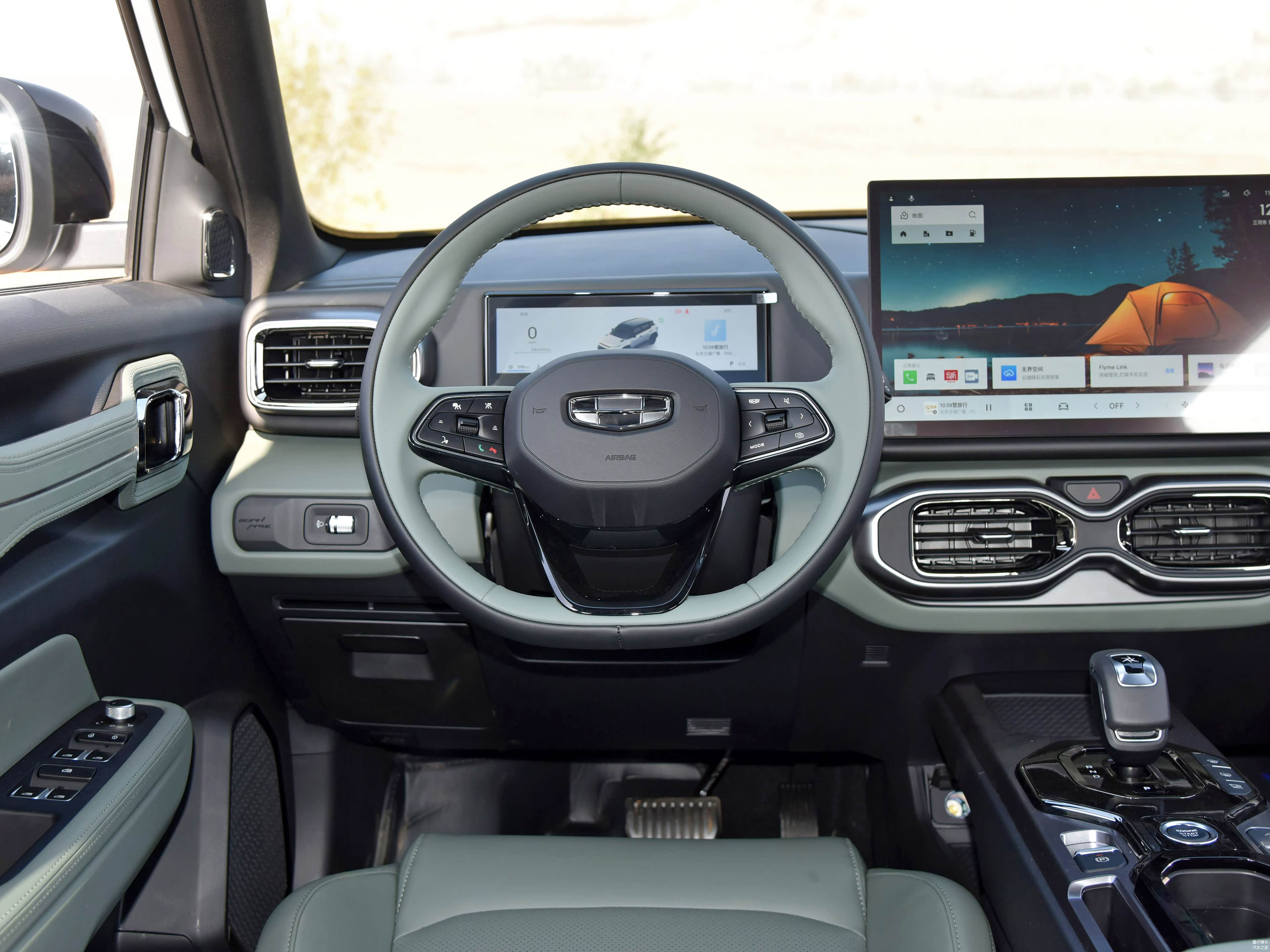 配置方面,吉利牛仔全系标配14.6英寸中控大屏,搭载Flyme Auto智能车机系统,最窄边框仅7mm,据吉利内部人员透露,吉利牛仔搭载了12nm工艺、8核CPU的E02高性能座舱芯片,响应速度极快,且支持桌面超级自定义。同时,新车还将配备256色呼吸氛围灯、主驾6向电调、手机蓝牙智慧钥匙、手机APP远程控制等配置。