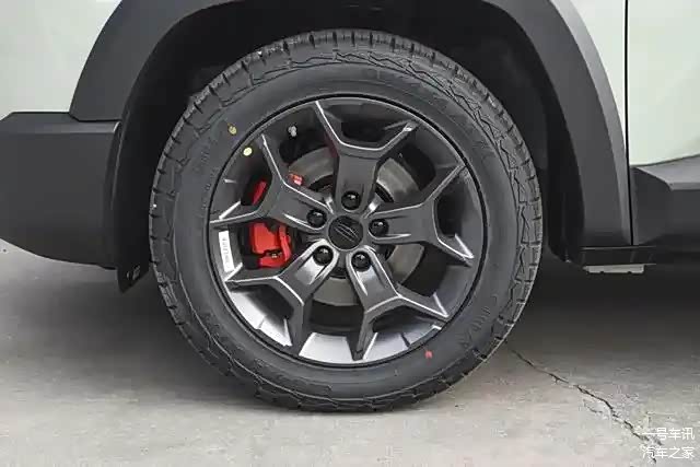当你进入车身的侧视图,吉利牛仔展现出的规整车身轮廓,加上双色车漆的应用以及车辆上多处凸显的细节线条和熏黑装饰物,无疑赋予了整个车辆强烈的力量感。此外,这款新车配备了顶部物品摆放平台、18英寸的深色轮毂(215/55 R18)和红色刹车卡钳。