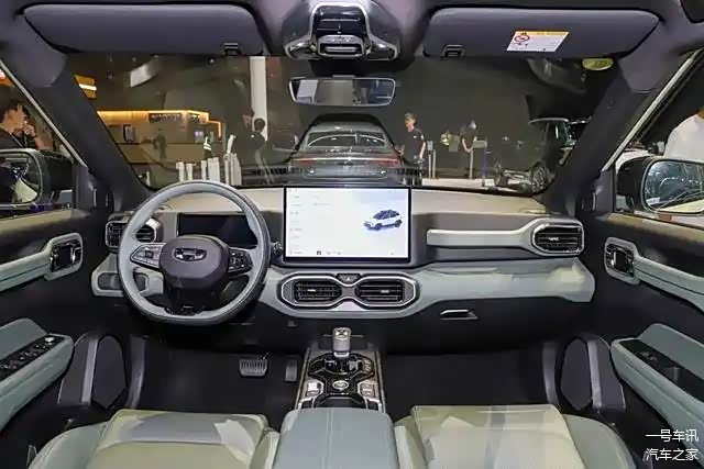 在内饰设计方面,吉利的牛仔车的中控区域配备了三幅式平底方向盘、8.8英寸的液晶显示仪表和14.6英寸的悬浮屏幕。与此同时,这款新车还配备了电子版的换挡系统。