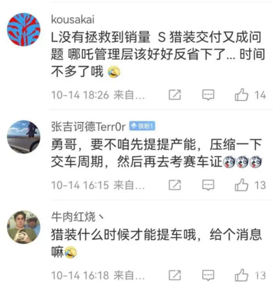只不过这份热度到8月份就戛然而止,哪吒L由于交付困难,导致销量一路下滑,到10月份只剩下1990辆。与此同时,同样被业界期待的哪吒S猎装版在订单爆款后,拖了10个月还是没能交付,这也造成准车主的不满情绪……可以说哪吒汽车是流量的宠儿,但没有消化这泼天富贵的根基。