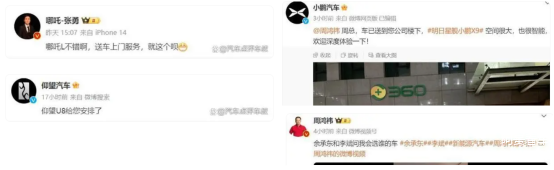 相较之下,周鸿祎这在被业界推上和余承东、雷军同等流量高位后,似乎就出现与哪吒切割的迹象,对于哪吒的这些暴雷问题也完全保持静默,也因为工作问题未能赶上广州车展。但这不妨碍他还是顶流,日前一句“卖掉迈巴赫后,我就买了12辆国产车!无论钱多钱少,我觉得都做得非常出色,进口豪车销量在下降”,又引来全网的热议,各大品牌也开启送车模式,争相让红衣主角成为自己的车主。