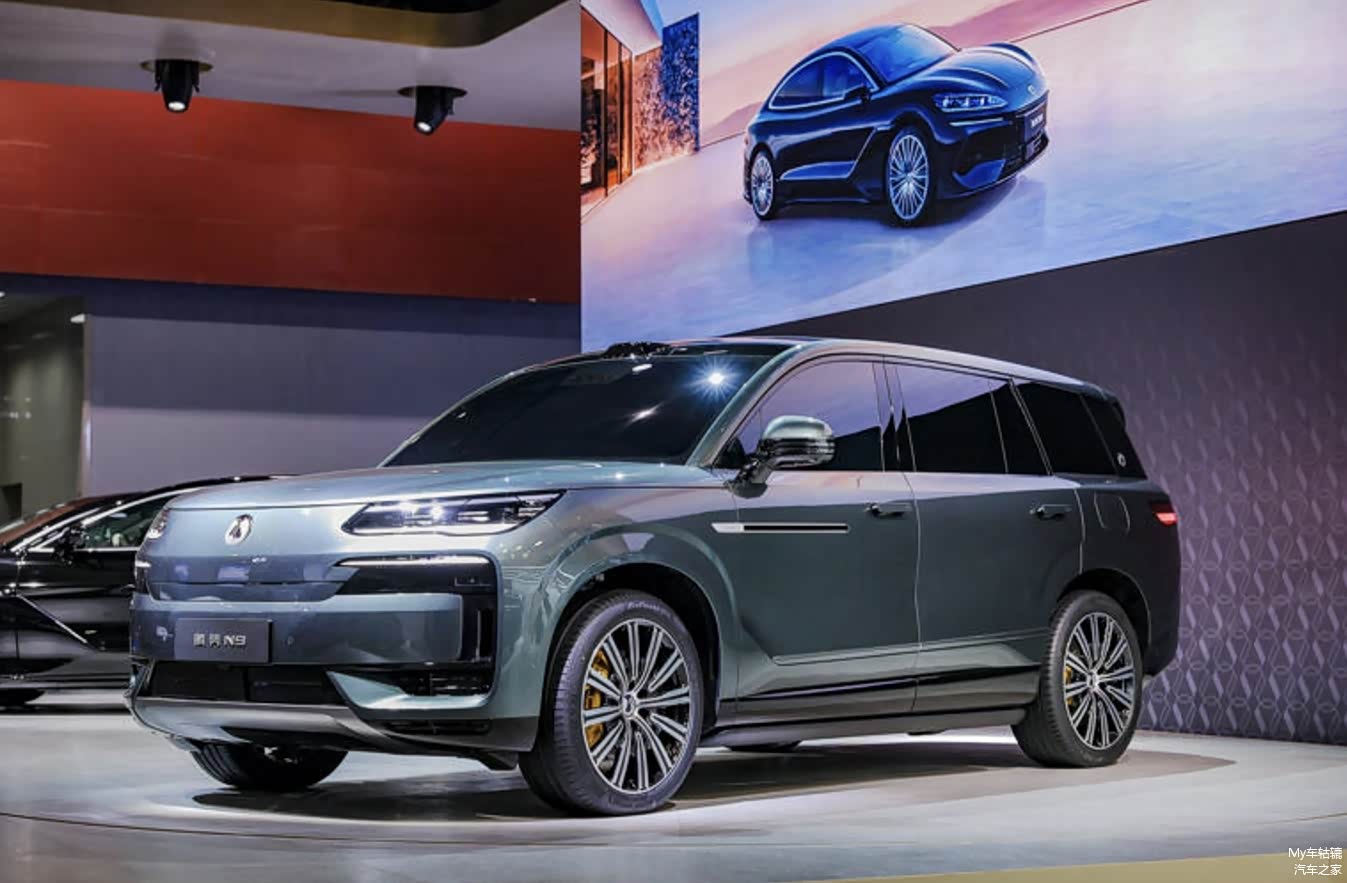 腾势N9在广州车展亮相,新车定位大型SUV,采用六座布局,全系标配易三方技术,动力上将搭载2.0T插混系统,预计明年年初上市。
