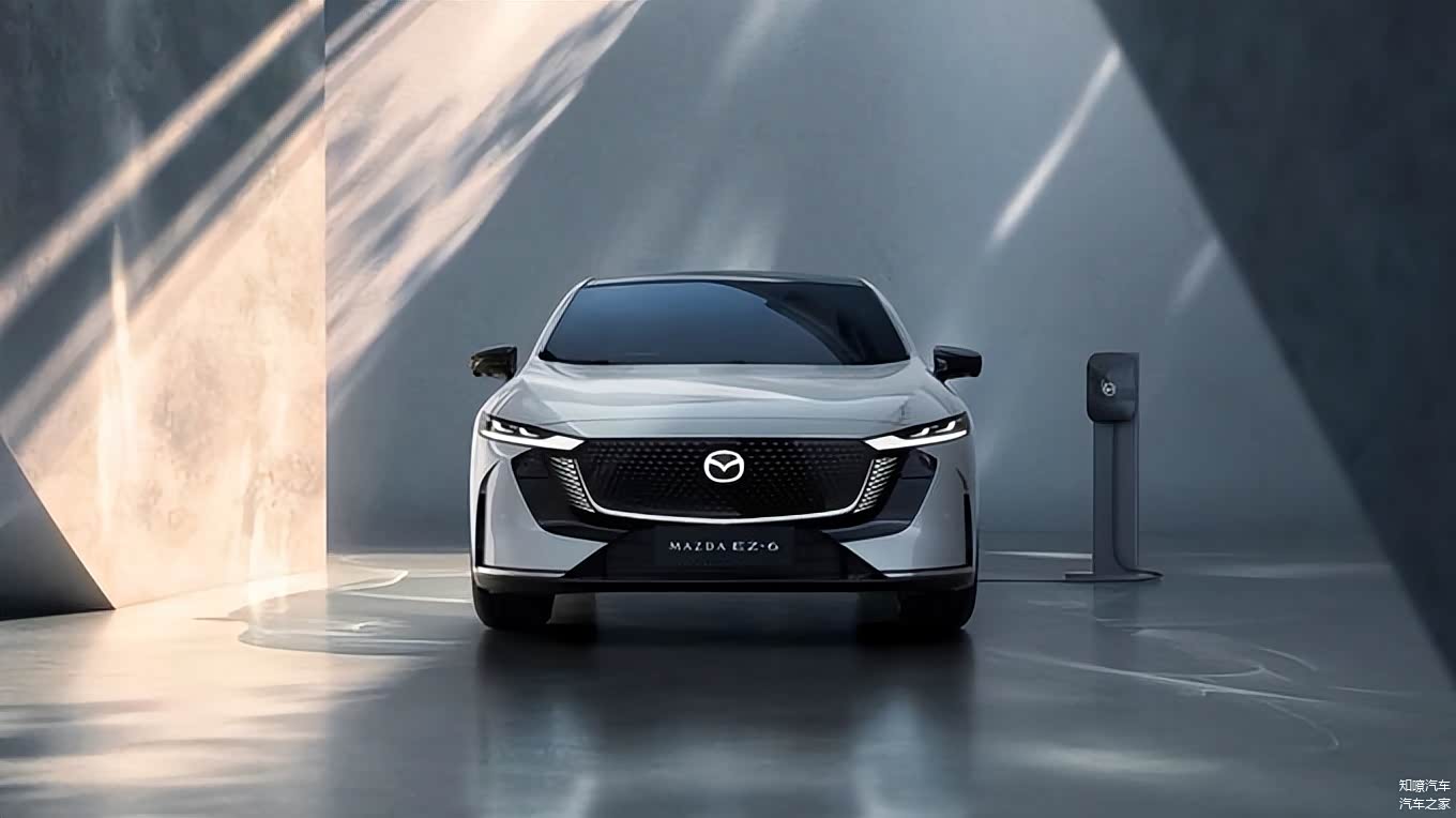 外观方面,长安 马自达EZ-6(图片 | 参数 | 询价)沿用家族理念,分体式大灯及中网周围配有贯穿式流水灯,以及马自达标志,点亮后充满了科技气息。