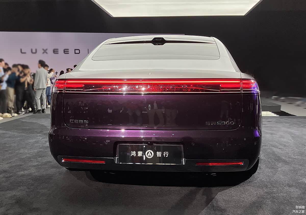 车尾部分,后风挡上部带有激光雷达,和突出的扰流造型相呼应。尾灯使用了横贯式的设计,灯组上下轮廓平行,内部除了光带式的光源结构,还使用了银河星空效果的光源。灯组下部使用了大面积的留白式设计,牌照框位于后杠上,后杠造型很简洁,底部带有黑色下护板。