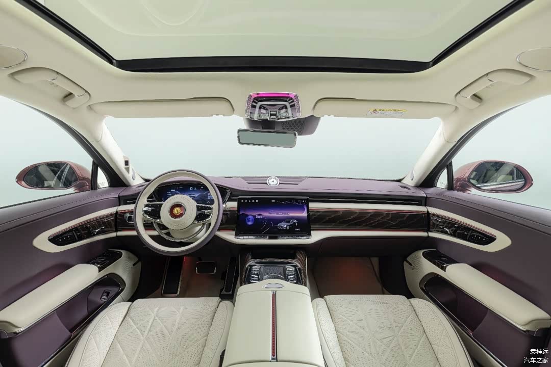 红旗金葵花国雅的中控台整体设计,采用了符合中国人传统审美的对称式布局,而液晶仪表、可个性化定制的桃木饰板、大面积皮质覆盖面等传统豪华车该有的元素,自然也是没有缺席,一眼看上去就是豪车。